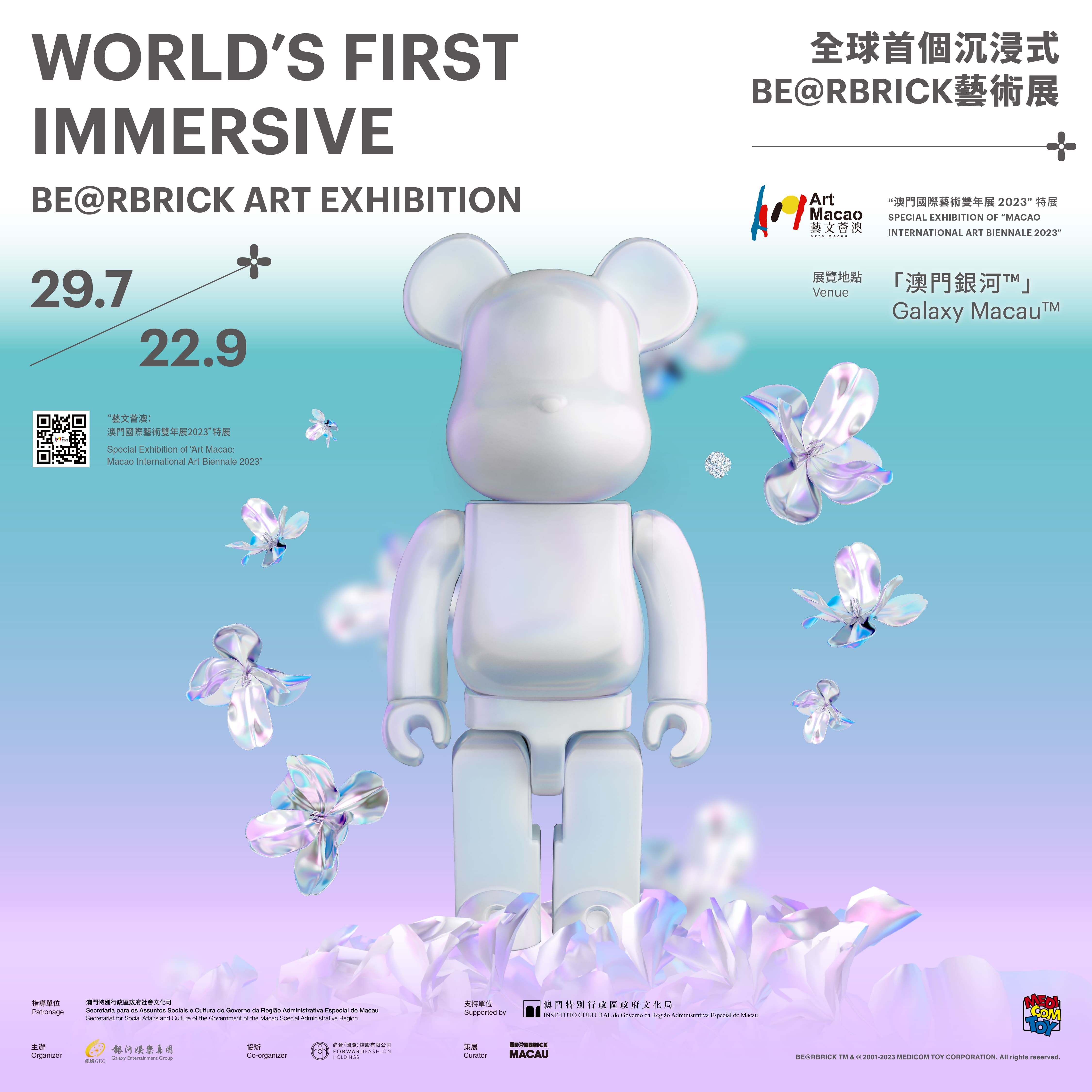 To celebrate the 5th anniversary of BE@RBRICK MACAU with a more vibrant and joyful atmosphere, the "BE@RBRICK MACAU - The World's First Immersive BE@RBRICK Art Exhibition" will kick off on July 29th at Galaxy Macau! As the largest-scale BE@RBRICK art exhibition of the history of Macao, it combines technology and digital art to present a cultural fusion of the trend and art.