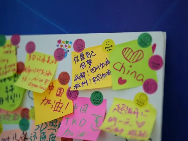 Photo shows a message board at the FISU Games Village in Chengdu, capital of southwest China's Sichuan Province. (Photo/Xinhua)