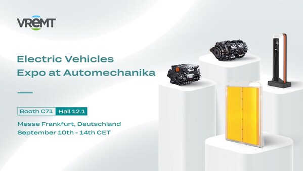 FRANKFURT,Germany,Sept. 10,2024 -- ELECTRIC VEHICLES EXPO AT AUTOMECHANIKA,September 10th-14th CET,it is the first time for Geely Holding Group to lead its brands to participate in overseas expo. At the expo,VREMT,a subsidiary of Geely Holding Group,will exhibit its comprehensive lineup of 800V battery,motor and electronic controlproducts,showcasing Geely's core strategic products and China's new energy technology.
