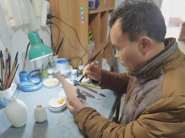 BEIJING,Sept. 11,2024 -- "Unlike other materials,one must be more careful when applying the glaze..." MaYunliang,an inheritor of Lunan Ma style glaze technique,is explaining how to paint glaze in his studio,holding a white ceramic vase in one hand and a brush in the other.