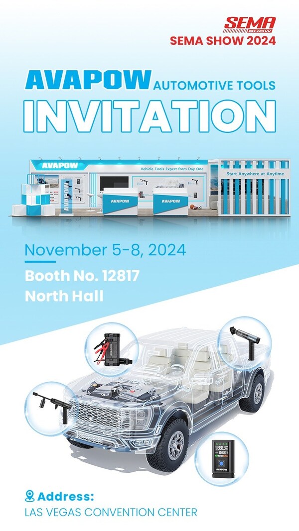LAS VEGAS,Nov. 2,2024 -- AVAPOW,a leading expert in vehicle tools,is thrilled to announce our participation in the SEMA Show 2024,taking place from November 5th to November 8th at Booth No. 12817 in the North Hall of the Las Vegas Convention Center. Join us to explore our latest innovations and connect with automotive enthusiasts from around the globe!
