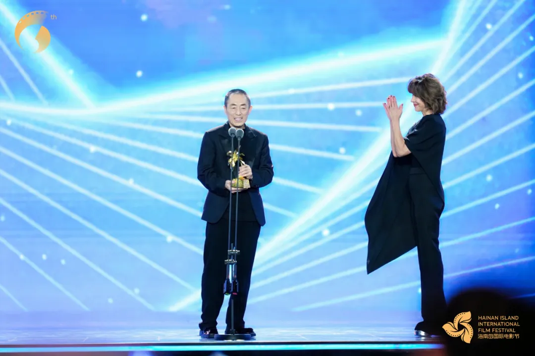 Chinese director Zhang Yimou attended the opening ceremony as a special guest, where Sophie Marceau presented him with the Hainan Island International Film Festival “Lifetime Achievement Award.” Holding the trophy, he expressed his heartfelt gratitude: “The beautiful and vast sea of Sanya serves as a grand stage for fostering communication and exchange among people from all over the world. Film is our shared dream, and the term ‘lifetime’ herein does not signify an end but marks a new beginning.”