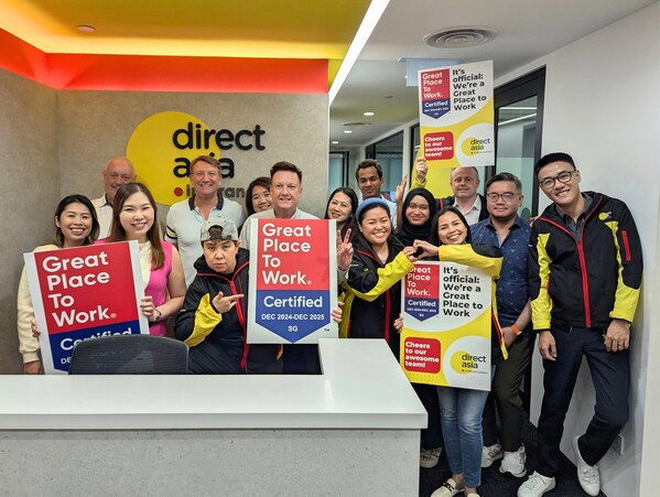 SINGAPORE,Dec. 16,2024 -- DirectAsia Insurance has earned the prestigious Great Place to Work CertificationTM,recognising its dedication to creating a supportive,inclusive workplace and culture where employees thrive.