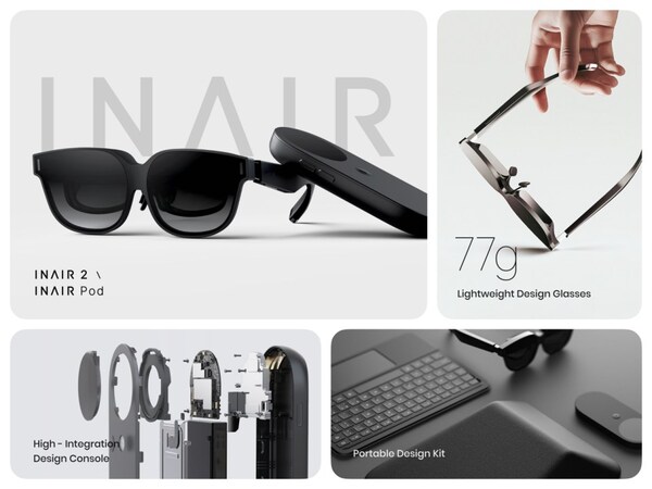 The system comprises three essential components: INAIR Glasses (INAIR 2/2 Pro) for immersive displays,INAIR Pod as the AI-powered computing hub,and the INAIR Touchboard for intuitive input. Together,these elements redefine how users interact with a borderless digital world.