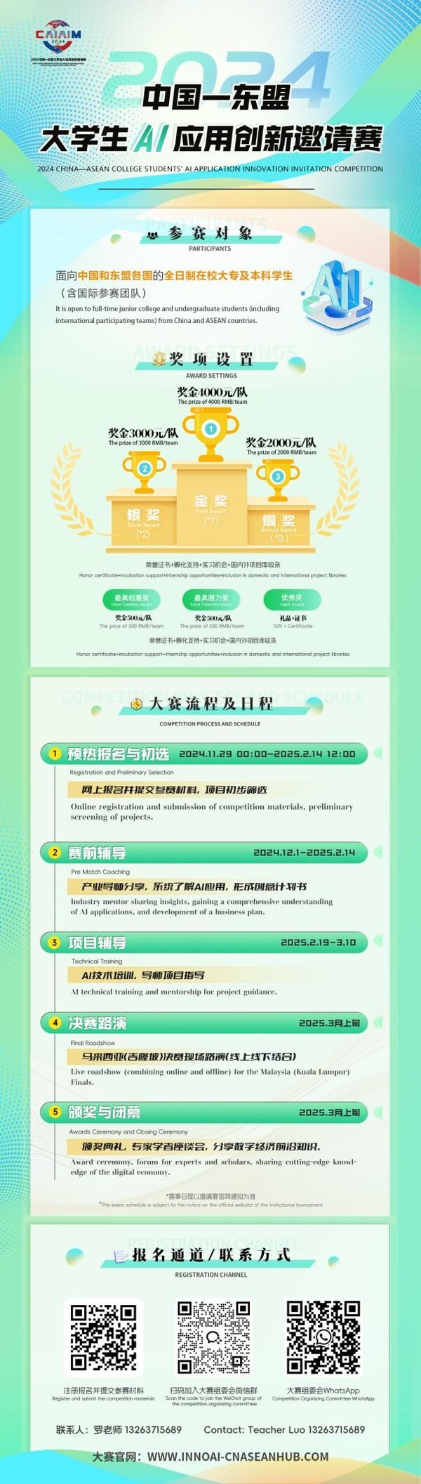 2024 China-ASEAN College Students' AI Application Innovation,Recruitment is starting now!