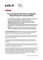SEOUL,South Korea and TARRAGONA,Spain,Feb. 27,2025 -- Kia Corporation has entered into a strategic partnership with Samsung Electronics Co.,Ltd. to introduce next-generation 'Internet of Things' (IoT) solutions for its Platform Beyond Vehicles (PBVs) offerings.
