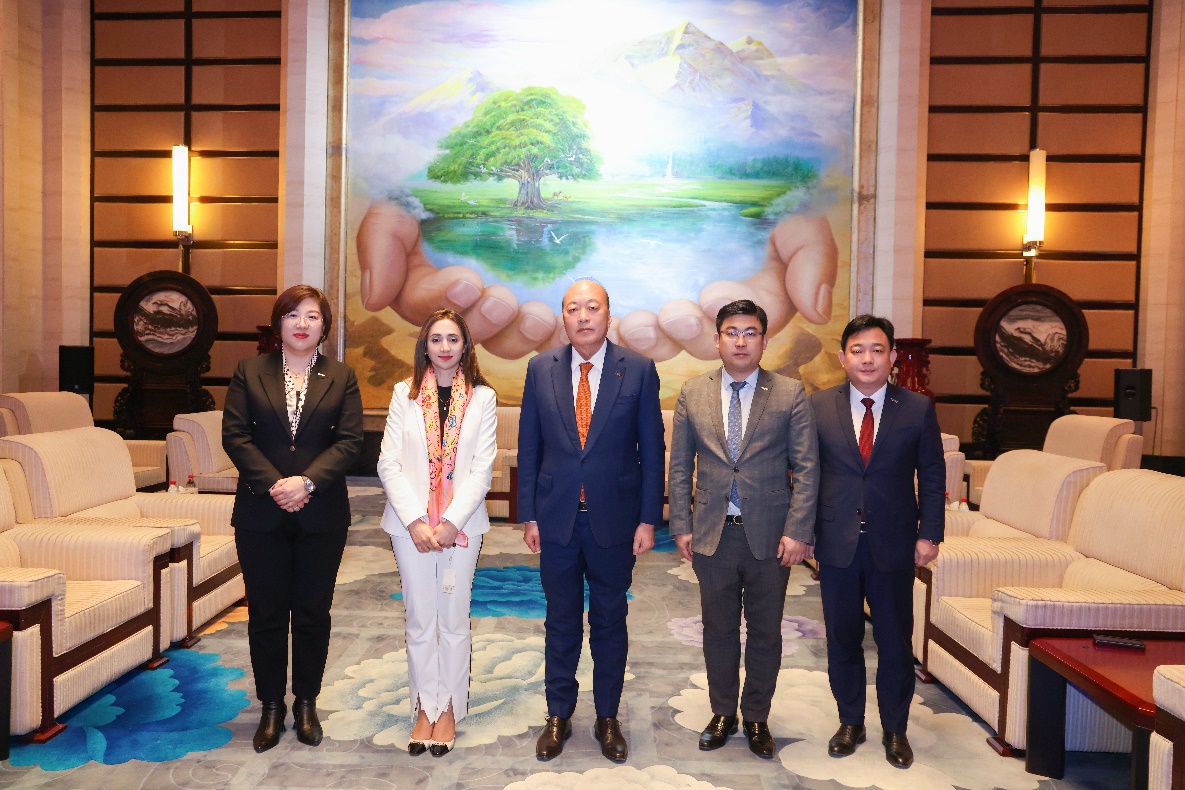 Chairperson of the Senate of Pakistan's Senior Strategic Advisor, Secretary-General for Senate Foreign Affairs and Political Affairs, Ms. Misbah Khan, Poses for a Group Photo with Senior Leadership of Tiens Group