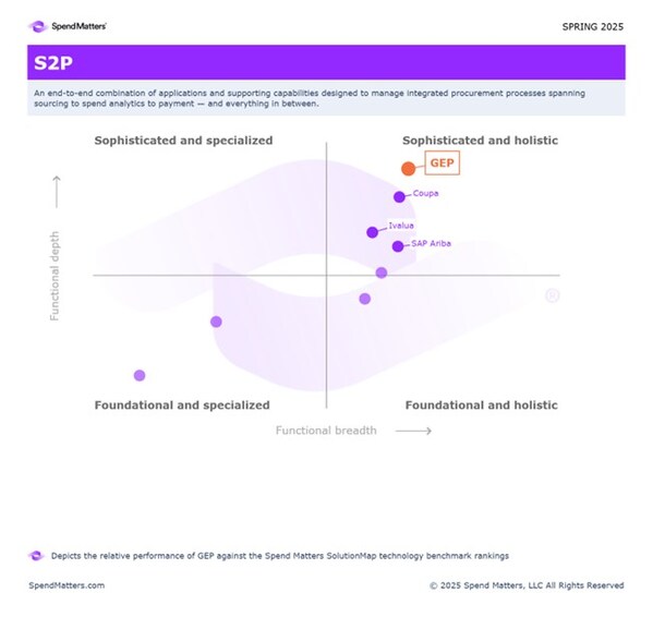 CLARK,N.J.,March 19,2025 --GEP®,a leading provider of AI-driven procurement and supply chain software and services for Fortune 500 and Global 2000 enterprises worldwide,announced that GEP SOFTWARE™ has once again secured the top ranking in source-to-pay (S2P), source-to-contract (S2C),and 10 other key categories in the Spend Matters Spring 2025 SolutionMap,the industry's most data-driven evaluation of software providers. Go hereto view Spend Matters Spring 2025 SolutionMap.