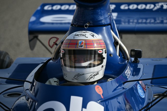 The helmet was revealed at today’s Bahrain Grand Prix,where Stewart also drove his 1973 championship-winning Tyrrell on an exhibition lap before the race.