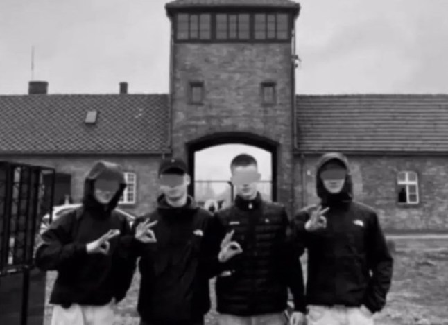 The high school pupils from Germany made the ‘OK’ gesture,which has been widely used by white supremacists when visiting the concentration camp,The Times reports.