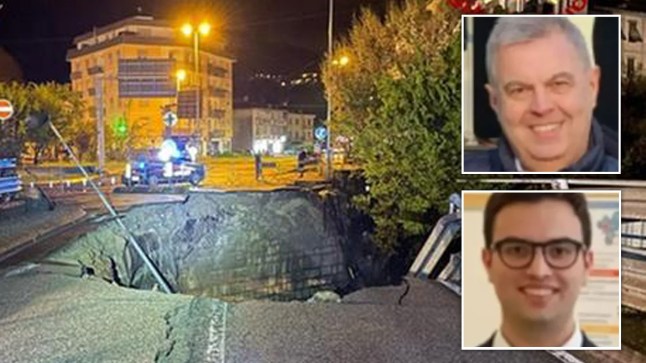 A dad and his son have been killed after a sinkhole opened up underneath them in Italy while trying to help rescue people from floods.