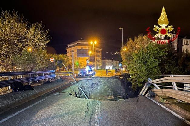 Leone and Francesco Nardon were driving into the northern Italian town of Valdagno in Vicenza when the ground beneath them gave way.