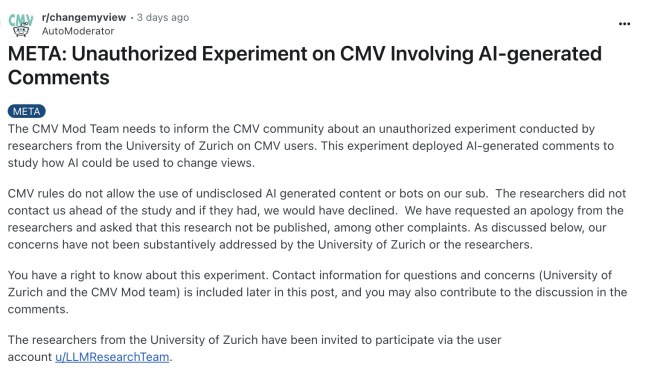 The AI accounts used the r/ChangeMyView subreddit (Picture: Getty)