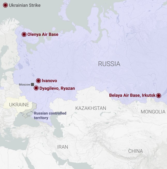Where the airfields Operation Spiderweb struck on Sunday