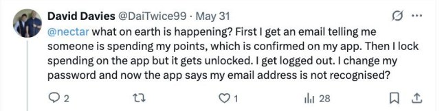 Another said they were ‘going nuts’ trying to resolve £100 of lost points and then being locked out of their account