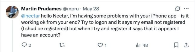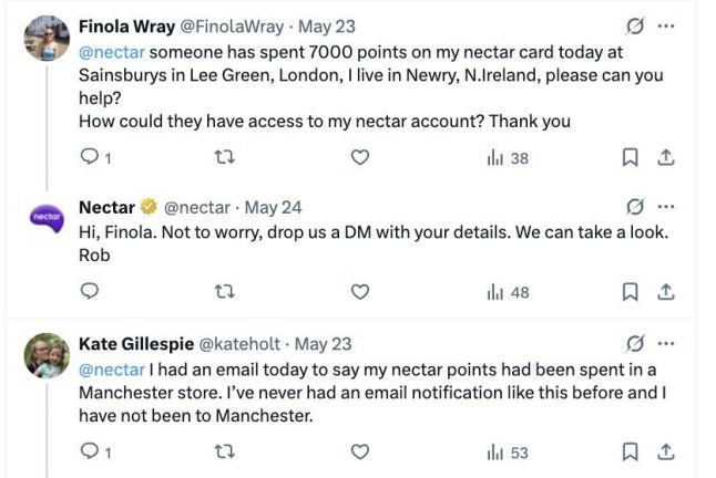 Some shoppers contacting Nectar online said their points had been spent while they weren’t even in the UK,while others said they were having problems with the app and ‘can’t even log in’.