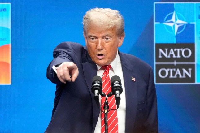 Trump at a press conference after the plenary session at the Nato summit in The Hague (Picture: AP)