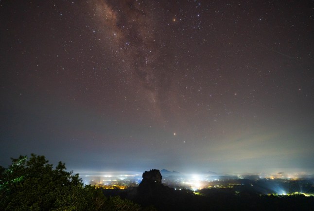 An Eta Aquariid meteor is seen over the Sigiriya Rock in Dambulla,Sri Lanka,earlier this year (Picture: Thilina Kaluthotage/NurPhoto/Shutterstock)