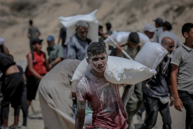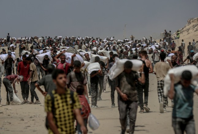 Palestinians flock to an aid distribution point near the Zikim Crossing in northwestern Gaza (Picture: Anadolu via Getty Images)