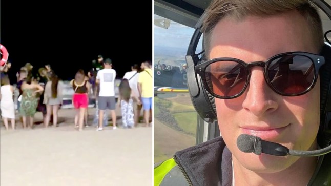 Onlookers watched as Robbie Conington was pulled out of the water at Levante Beach (Picture: Solarpix.com)