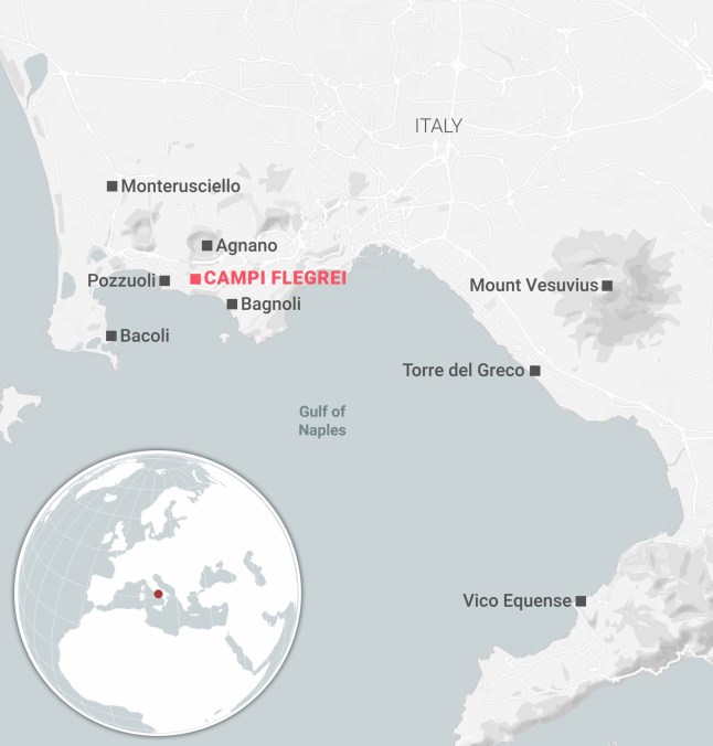 Campi Flegrei,‘burning fields’ in Italian,has been bubbling with volcanic activity in recent weeks (Picture: Metro)