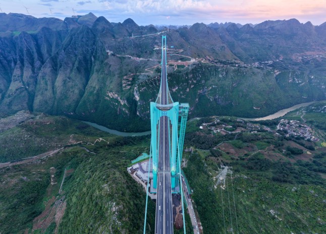 The previous record-holder for world’s tallest bridge was the Beipanjiang Bridge also in Guizhou province which stands 1,788 feet over the river.