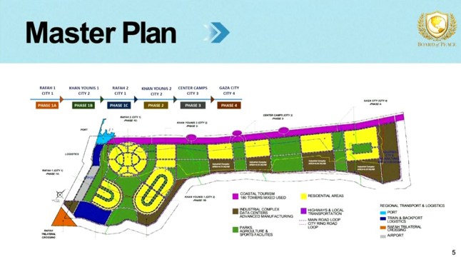 The plan is broken down into six phases of development,strting in Rafah and Khan Yunis,before moving north towards Gaza City.